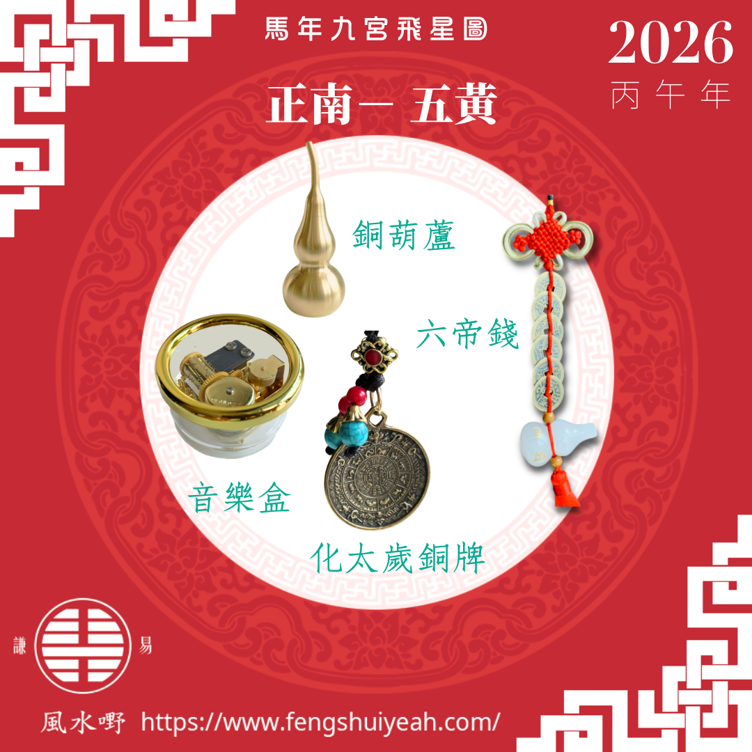 五黃建議風水物品:六帝錢、銅葫蘆、音樂盒、化太歲銅牌