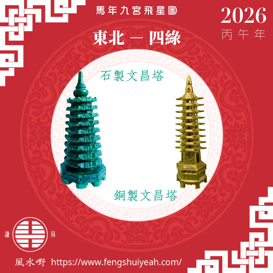 四綠建議風水物品:文昌塔(綠石)、文昌塔(銅)