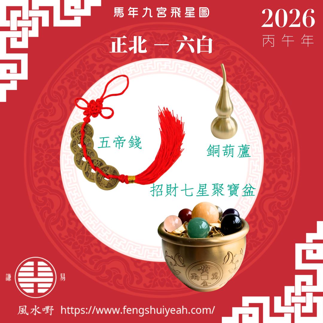六白建議風水物品:七星聚寶盆(大)、七星聚寶盆(中)、七星聚寶盆(小)、五帝錢、銅葫蘆
