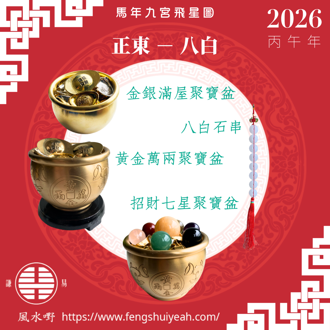 八白建議風水物品:聚寶盆(大)、聚寶盆(中)、聚寶盆(小)、七星聚寶盆(大)、七星聚寶盆(中)、七星聚寶盆(小)、八白石串